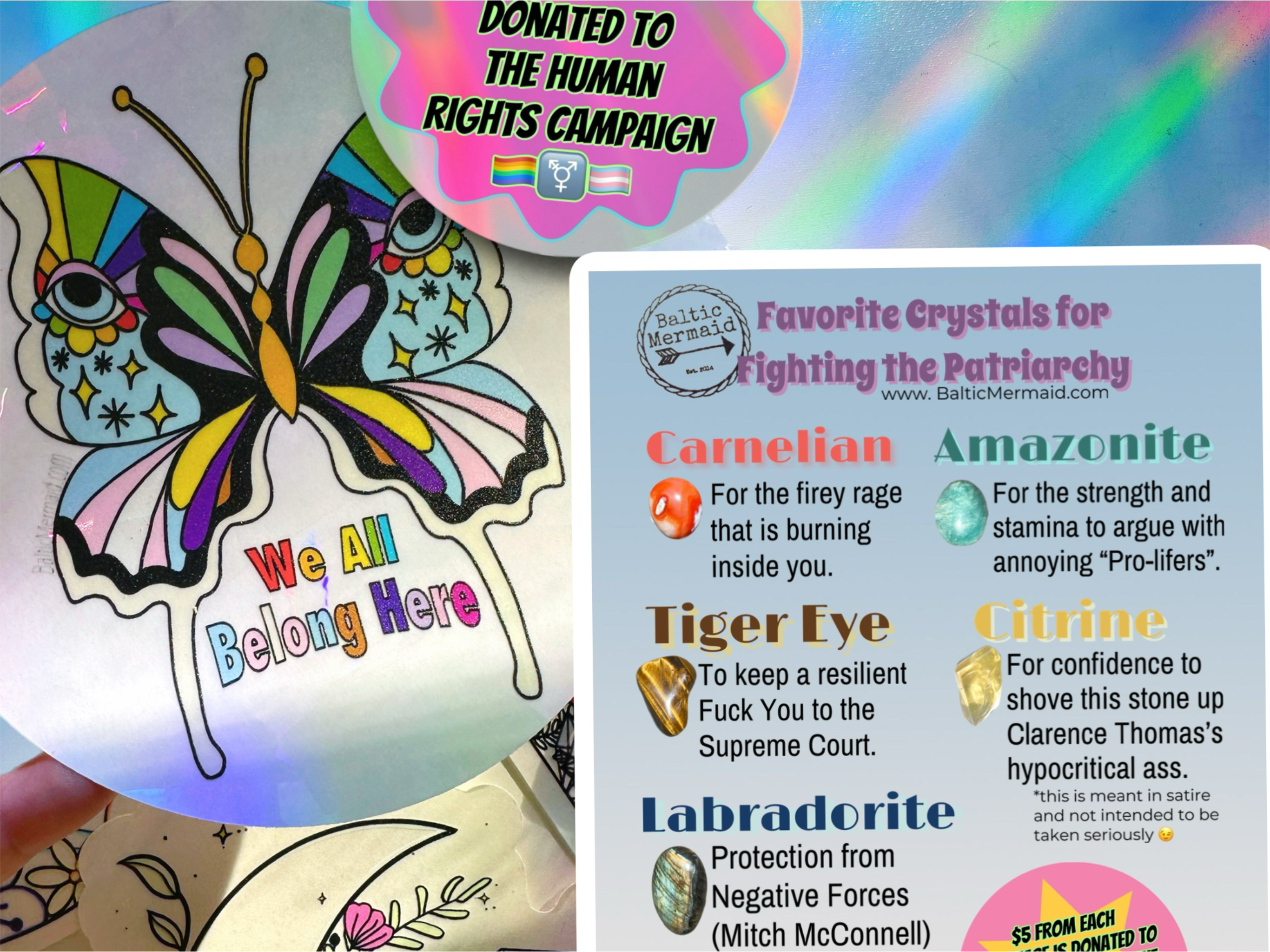 When you purchase the "Favorite Crystals for Fighting the Patriarchy" Crystal Set, $5 is donated to the Women's Reproductive Rights Assistance Program WRRAP helps bridge the financial gap for women who seek an abortion or emergency contraceptives.