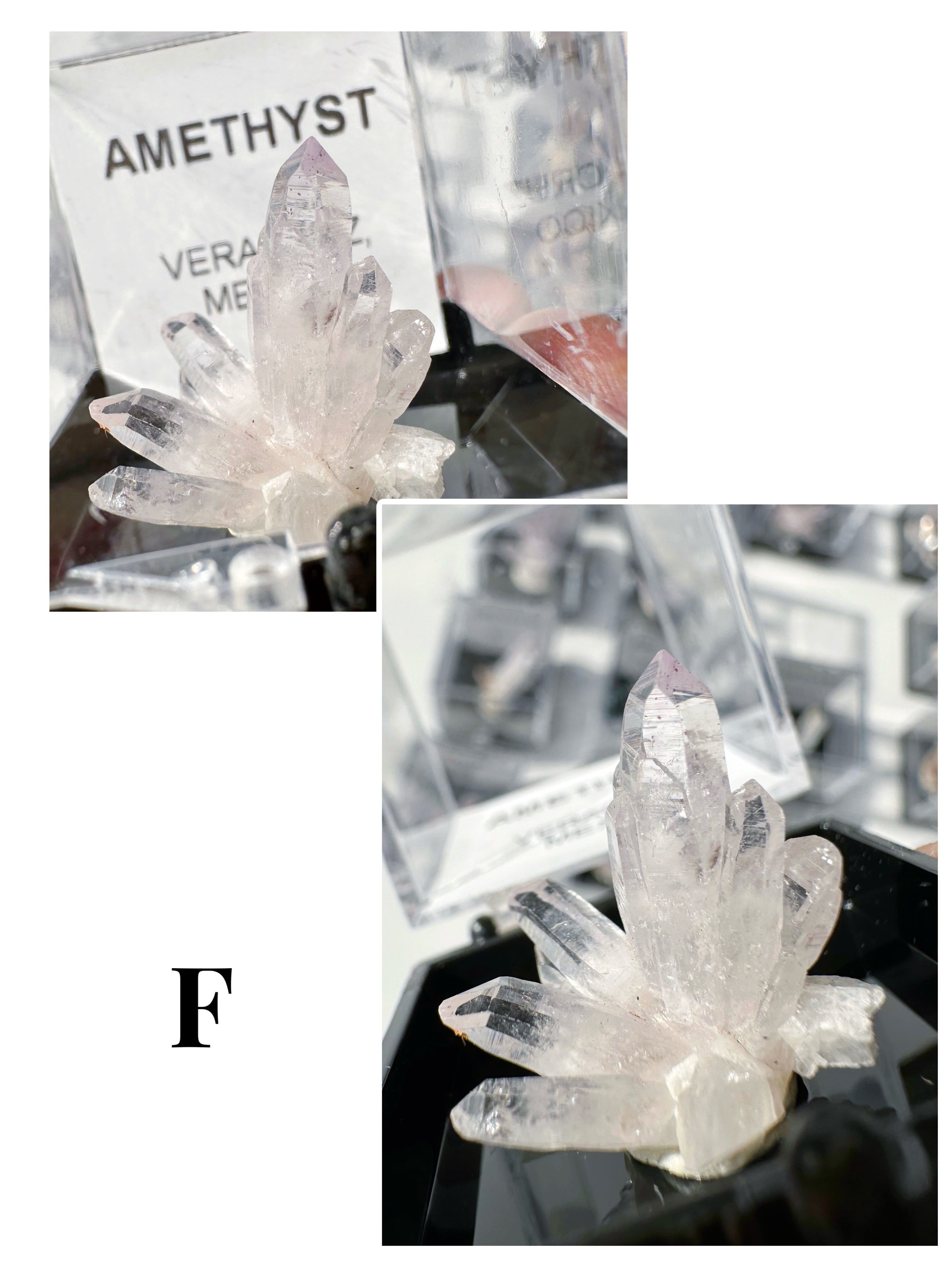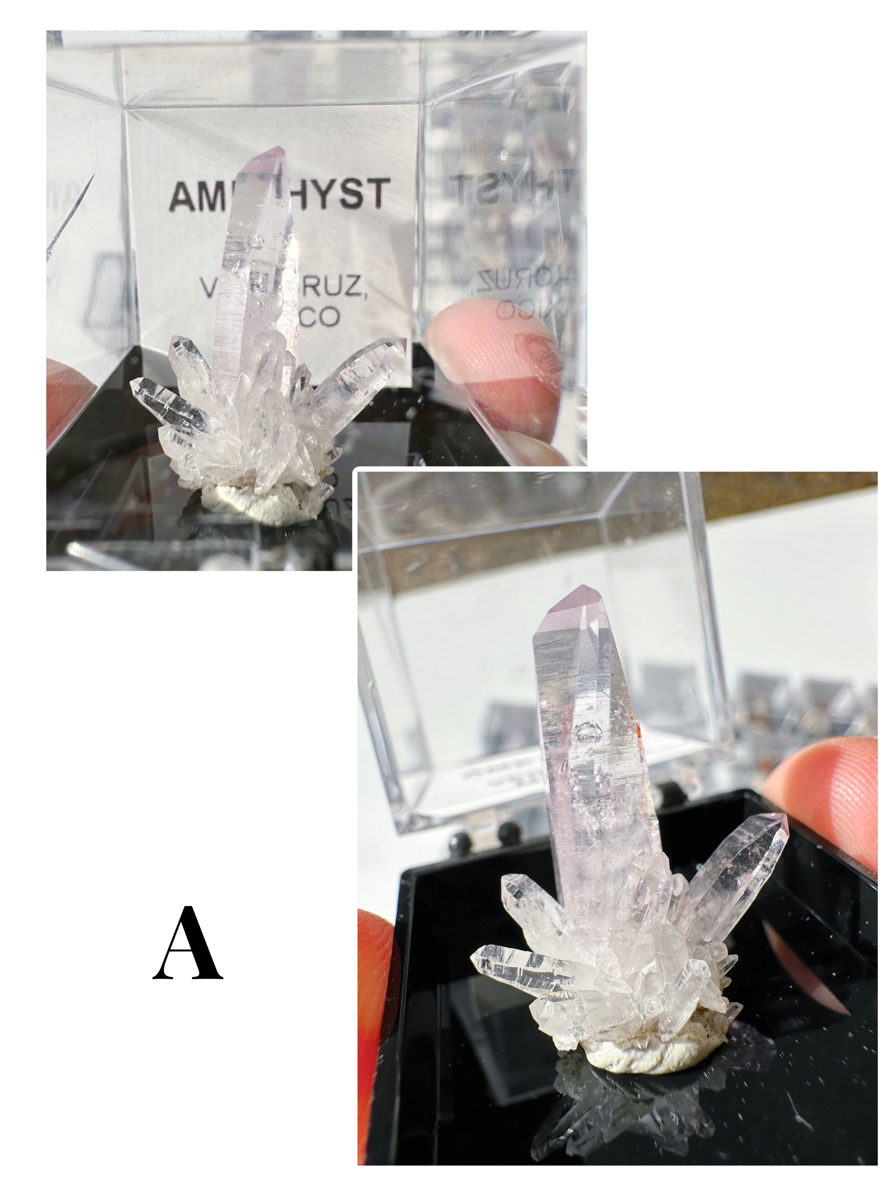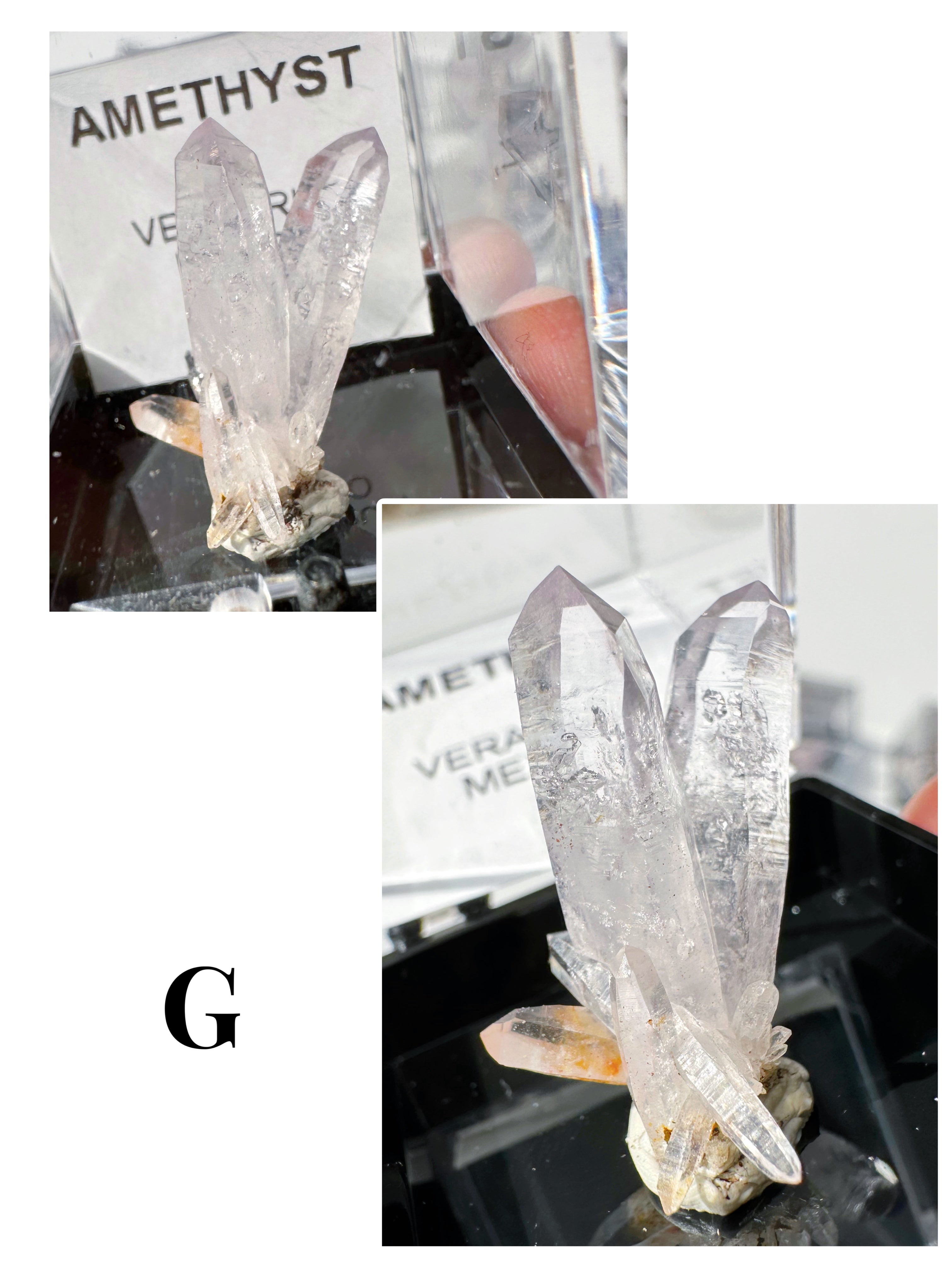 Veracruz Amethyst is sourced exclusively from the Los Vigas Mine in Vera Cruz, Mexico, the only known location for this unique gemstone. This rare variety of Amethyst has a translucent to pale purple color, often with a darker purple tip. It forms as individual or clustered prismatic crystals, resembling elongated pencils.