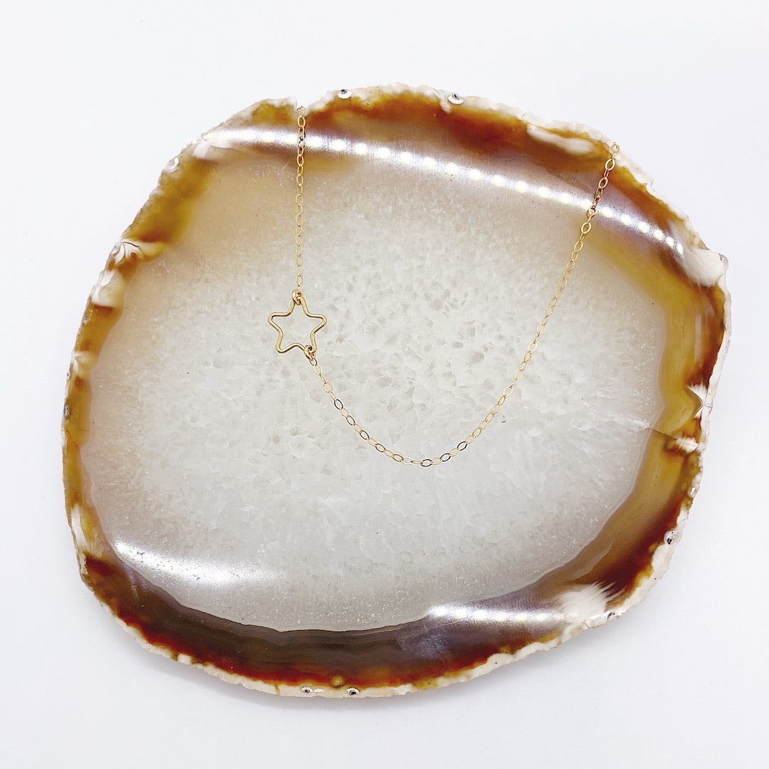 The Star Choker is perfect for everyday wear, made with 14k gold filled chain and findings with an off center gold Star.