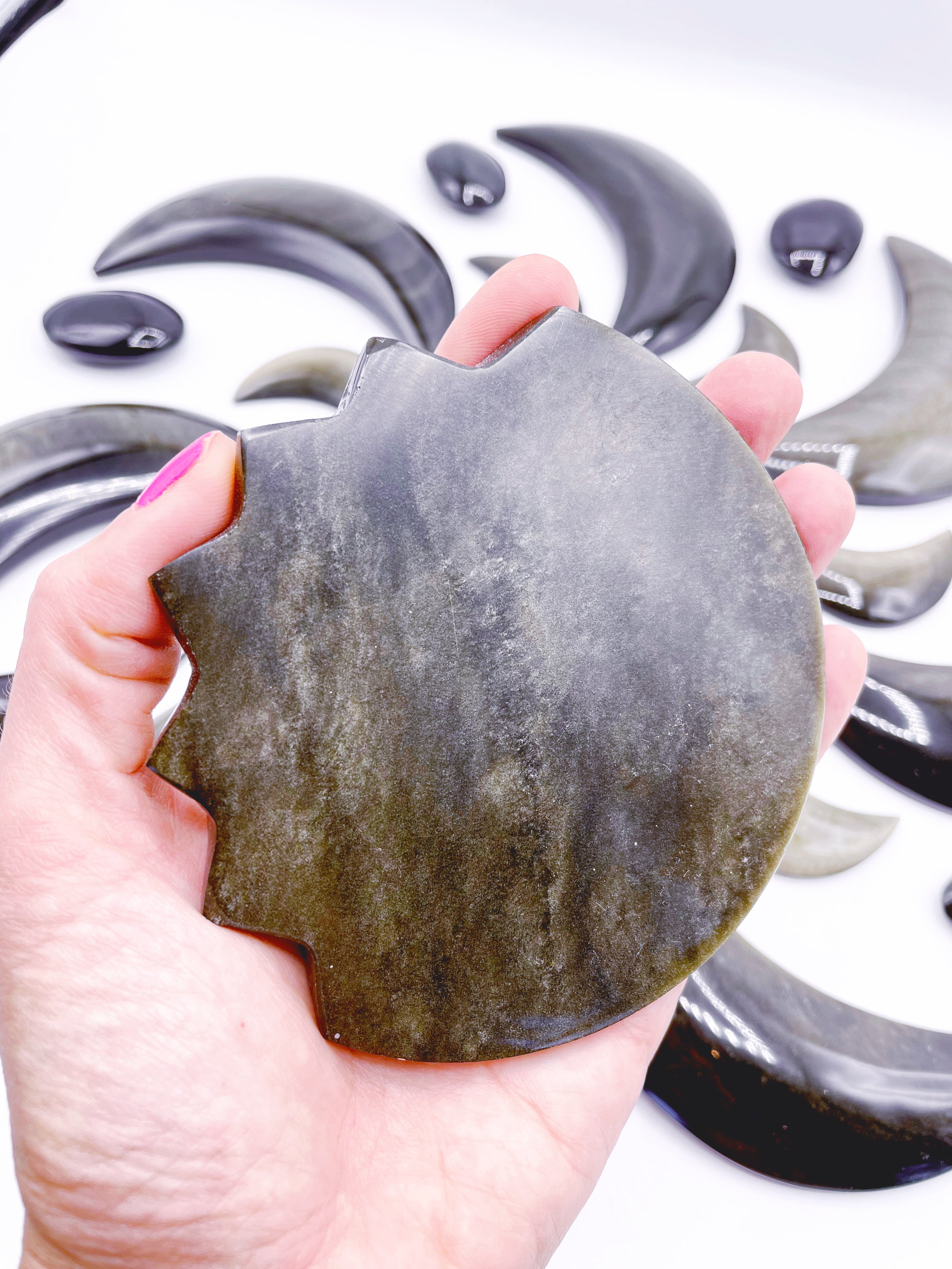 Gold Sheen Obsidian is a particularly good stone for scrying, it takes you deep into the core of a problem exploring the future and past. Balances energy fields. it helps to eliminate ego conflict, releasing ego involvement, it bestows knowledge from a spiritual direction. Astrological Signs: Sagittarius