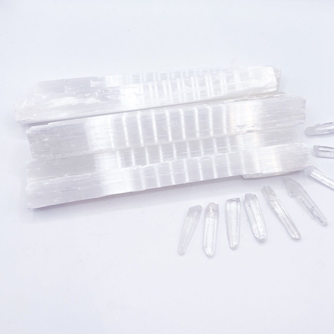 Selenite is a supportive stone that helps to influence positive changes in ones life. It has an extremely gentle, cleansing energy that clears blockages and allows for a free flow of energy. Selenite calms and quiets an overactive mind,  removing worries and distractions allowing complete focus. Great for decision making and prosperity. Can be used to cleanse and re-energizes other crystals.