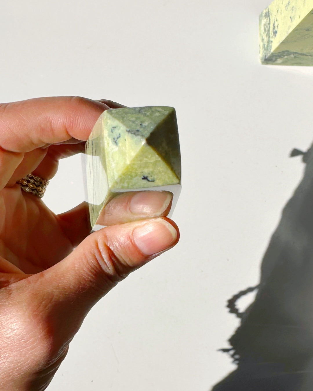 Serpentine, an earthing stone, enables the flow of the Kundalini energy, opening new avenues for spiritual exploration and enhancing meditation. Additionally, it provides a grounding effect.
