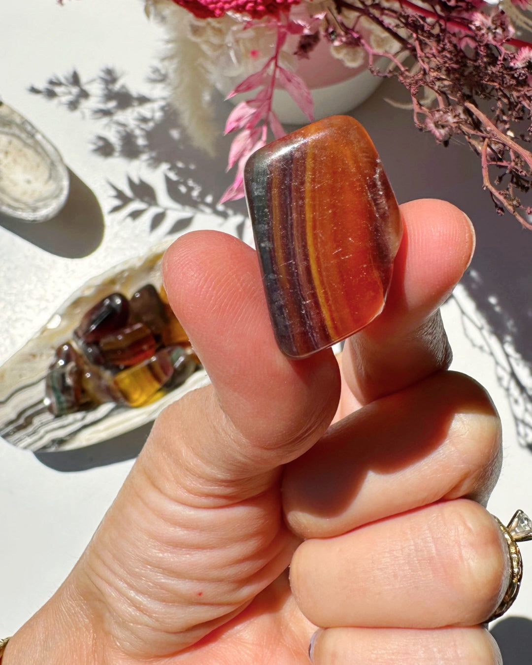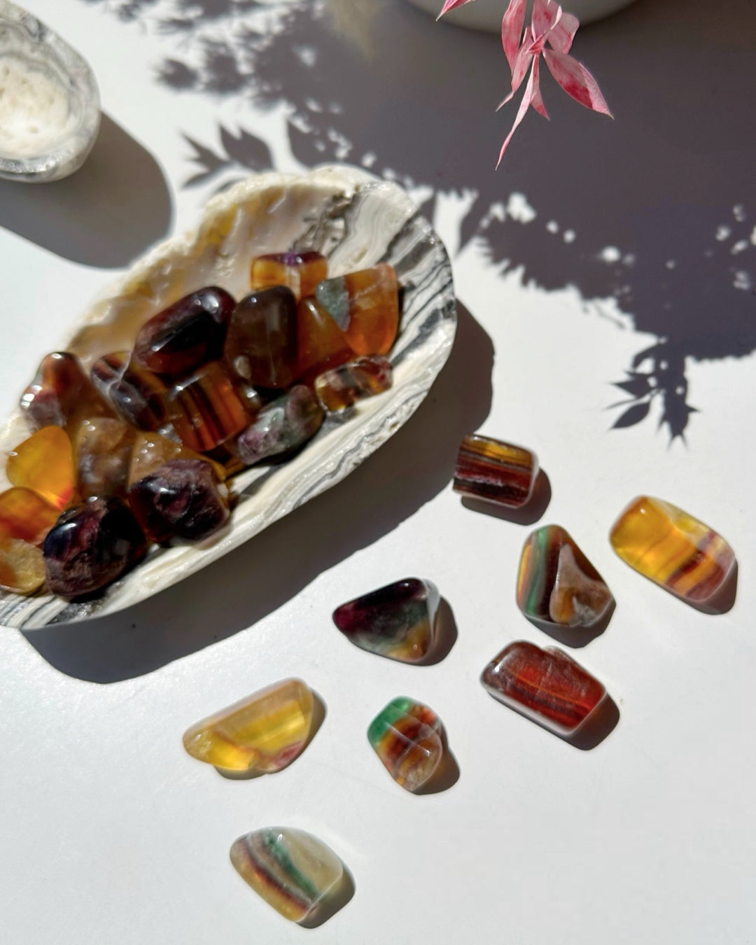 Unearth the timeless beauty and wisdom of our Old Stock Banded Fluorite Tumble Stones from Argentina, each piece showcasing layers of enchanting colors that captivate and calm the spirit. These unique stones, sourced from reserves no longer commonly available, bring a special legacy of the earth's natural artistry to your collection.