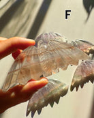 Check out these stunning Fluorite Bat carvings! Each piece features beautiful shades of purple, green, and soft pink that catch the light in a mesmerizing way. With their intricate details and unique coloring, these bats are perfect for adding a magical touch to your space.