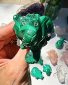 Crafted from lustrous malachite, known for its deep green swirls symbolizing growth and renewal, this lion is not just a symbol of nobility but also a powerful metaphysical tool. Malachite is celebrated for its ability to shield against negativity, absorb environmental pollutants, and activate the chakras. It enhances the ability to embrace change and supports emotional clarity.