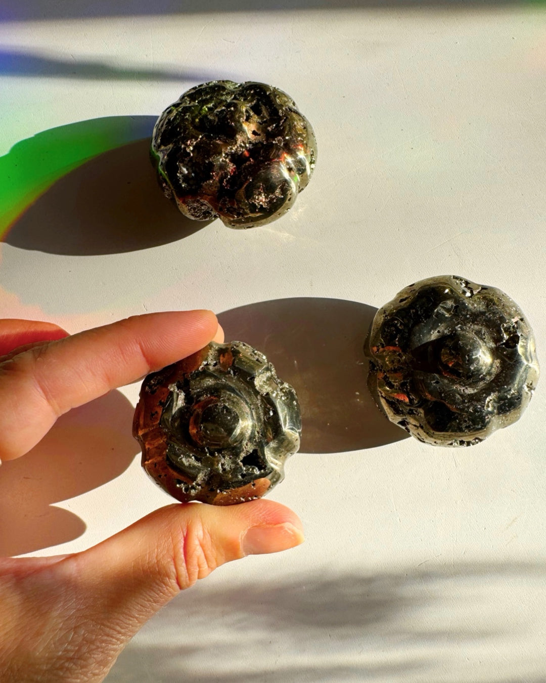 Pyrite is known as a stone of protection and abundance, often referred to as “Fool’s Gold” for its gold-like appearance. It’s believed to block negative energy and attract wealth and good fortune, so these pumpkins aren’t just festive—they’re full of good vibes too!