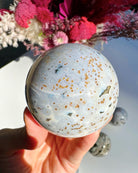 This Ocean Jasper Sphere from Madagascar not only serves as a mesmerizing decorative piece but is also imbued with powerful metaphysical properties. It is particularly effective in meditation, helping to align physical and subtle bodies and aiding in the communication of wisdom from the higher realms. Place this sphere in your home or office to create a centering focal point that radiates calming energies, fostering a serene and harmonious environment. Ideal for anyone seeking to deepen their meditation practice or simply bring a touch of natural beauty and peace into their daily life.